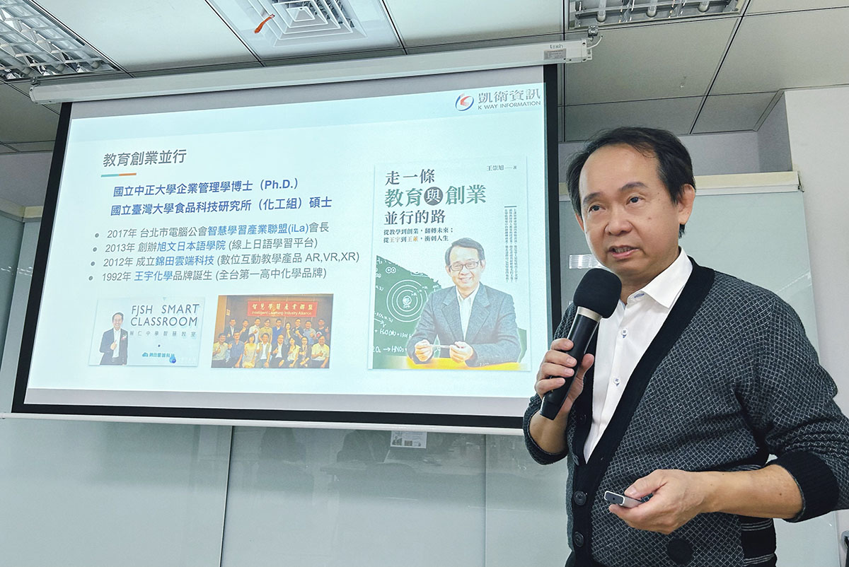2023年11月16日由淡江大學外國語文學院主辦之「多元與創新」教學研習活動,邀請凱衛資訊董事長王崇旭,進行專題演講。活動與會者為大學教授,專業領域遍及日語、德語、法語、俄語、資管等,共同針對台灣的教育科技未來趨勢,進行深度的跨域交流。